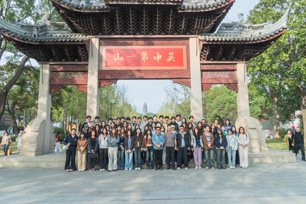 师生一行先后前往苏州留园、虎丘、拙政园、苏州博物馆及金鸡湖等地,实地考察园林建筑的线条韵律,沉浸式体验江南文化的深厚艺术底蕴。在随行教师的现场指导下,同学们在实践中深化了对中华优秀传统文化精神内涵的理解,进一步体悟艺术与生活、社会的内在联系,尝试以镜头为媒介,用光影语言传递文化之美、时代之韵。