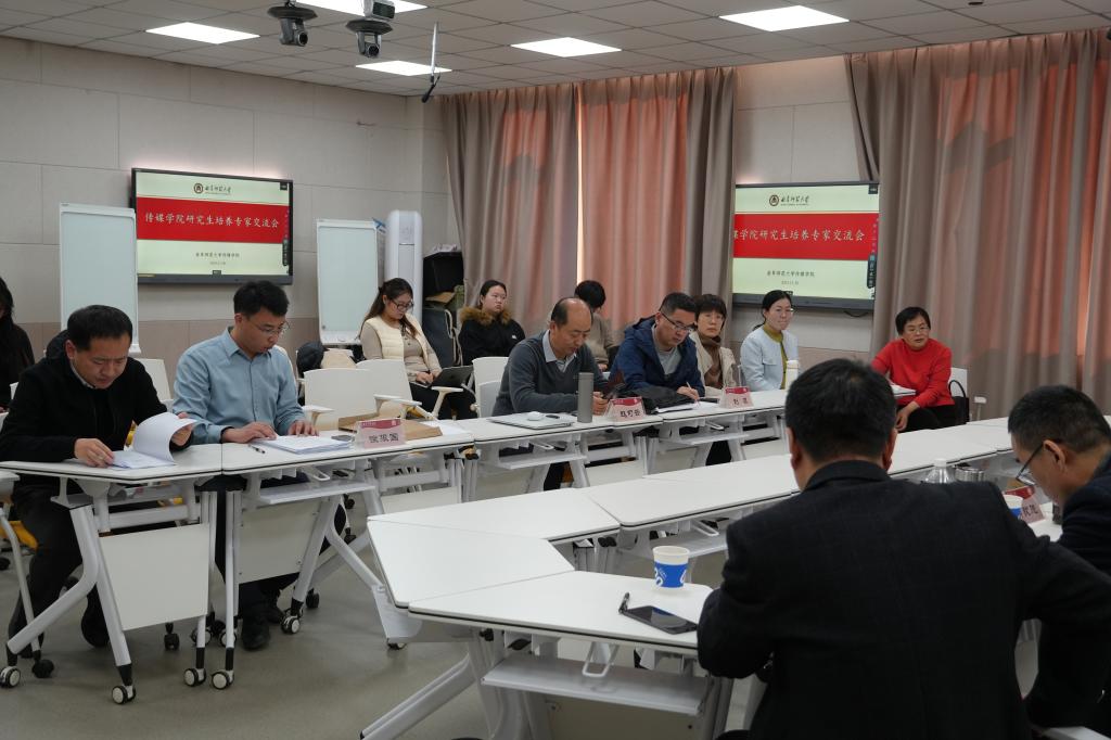 于F楼301举办研究生人才培养专家交流会。山东省社会科学院党委副书记、院长胡钦晓教授,中国教育技术协会信息技术教育专业委员会副主任委员兼秘书长、天津师范大学颜士刚教授,江苏省教育信息化工程技术研究中心常务副主任、江苏师范大学杨现民教授,曲阜师范大学教育科学研究院副院长徐瑞教授受邀出席座谈会,共讨人才培养的实践经验与学术见解。