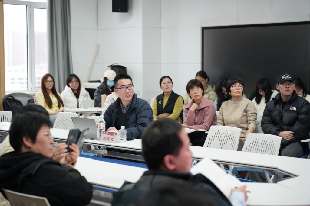 孙建文教授围绕“人工智能+教育”领域,系统阐释了智能时代个性化学习的时代背景、范式演进、技术创新、实践探索与未来展望。他从“因材施教”的教育理想切入,解析AI技术对规模化与个性化教育融合的支撑作用;以“AI4LS”研究范式为核心,介绍深度符号回归、教育大模型等技术创新;结合小雅智能教学平台、“师说”教师助手等落地案例,展现成果在多教育场景的应用价值。最后,孙建文教授从新机遇、新挑战、新路向作出未来展望。会后,与会老师就“数据感知与状态理解的转化”“小团队研究数据获取”等问题进行请教,郑教授耐心解答并做出具体指导。