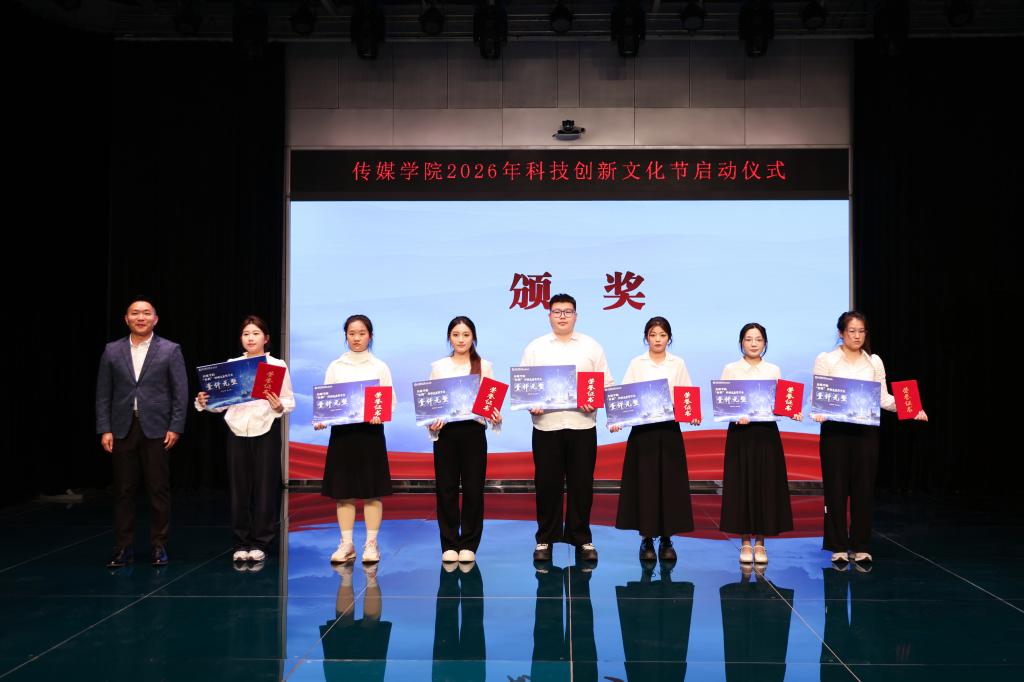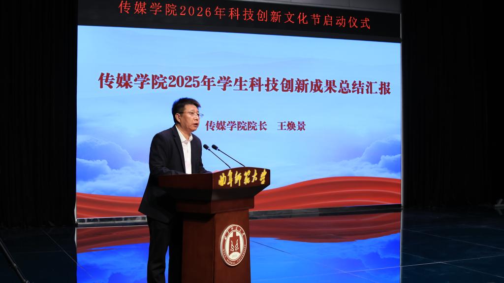 科技创新工作汇报。他详细汇报了学院2025年度学生科技创新成果,分析总结了学院以赛促学、以赛促教、以赛促创,搭建课赛融合的育人体系。他表示,本届科技创新文化节是全新起点,学院将紧扣AIGC、智能媒体发展趋势,开展系列特色科创活动,立足传媒专业打造“传媒+科技”特色创新路径,回归立德树人根本任务。他号召全院师生凝聚科创合力,营造创新氛围,为学校建设高水平应用型大学贡献传媒力量。