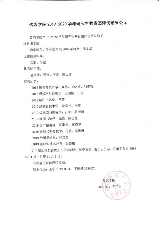 足球在线直播 2019-2020学年研究生共青团评优结果公示